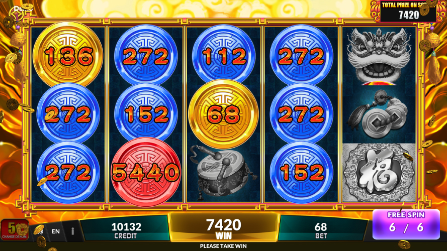 - Fortune Coin Feature: 6 free spins is triggered when six or more [Coin] appear in any positions.